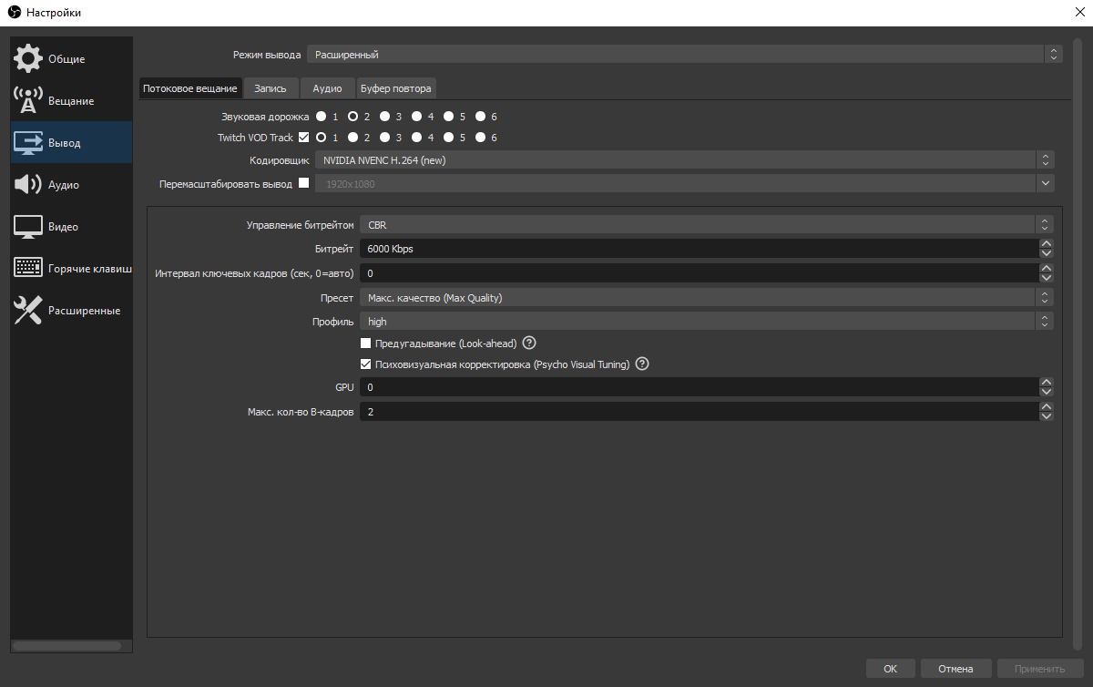 Настройка OBS Studio
