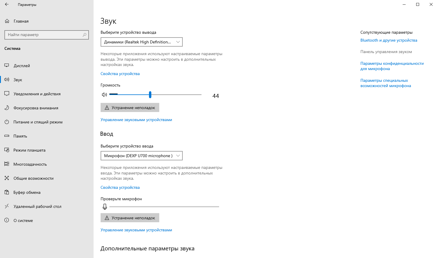 После установки программ, в своей Windows 10 откроем Параметры → Система → Вкладка Звук → В правой колонке Панель управления звуком.